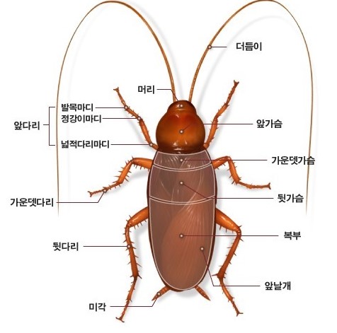 검색을 해보니 우리집에서 보이는 바퀴벌레는 독일바퀴벌레인듯 하다. 이 바퀴벌레는 실내에 서식하는 제일 흔한 바퀴벌레라고 한다. 몸은 편평하고 납작하며 광택이 난다. 몸길이는 약 1cm 이상이고 색깔은 황갈색이다.