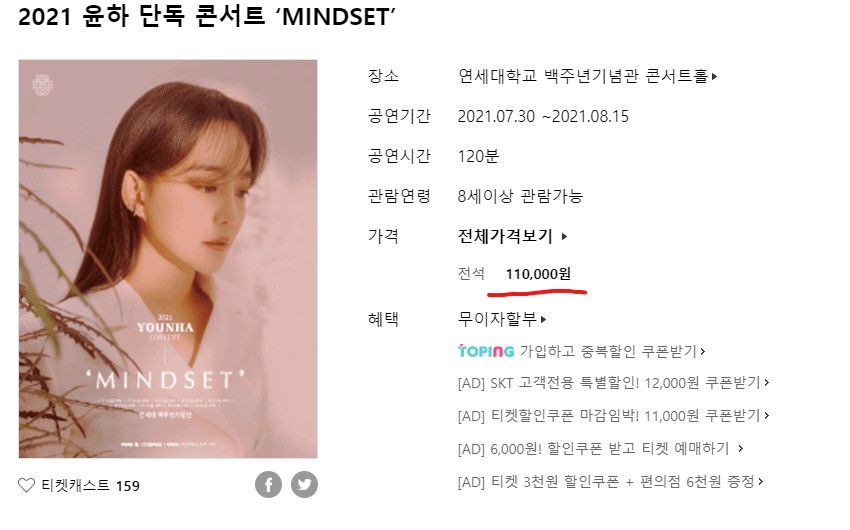 인터파크티켓에서 전석 110,000원이라고 한다. 부지런히 돈을 모아보자.